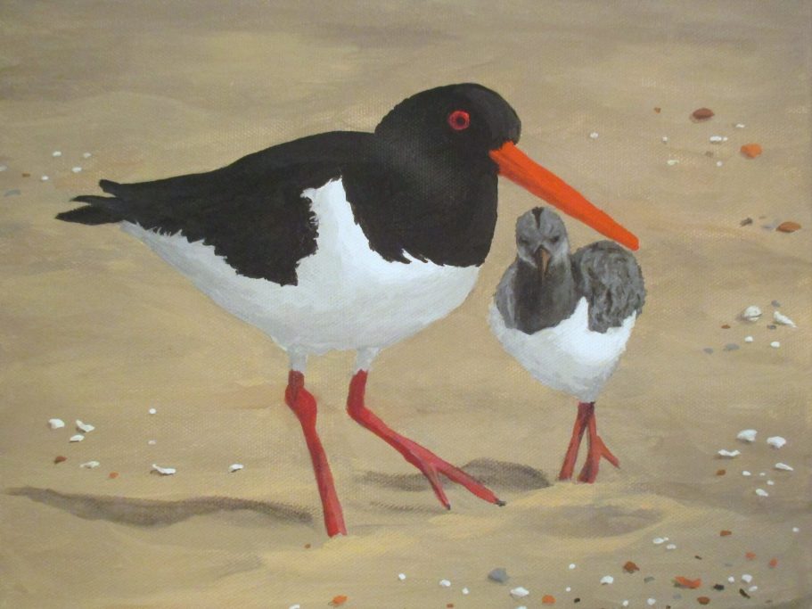 Austernfischer mit Nachwuchs, 24x30 cm