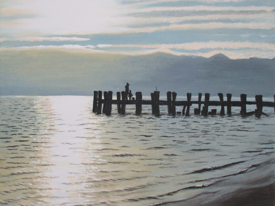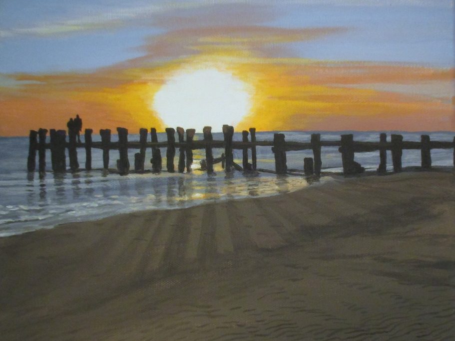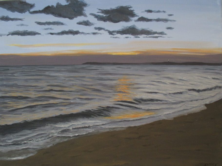 Ein frühes Werk von mir. Hier faszinierte mich das Zusammenspiel von untergehender Sonne und verschneitem Strand. Die blaue Stunde in kalt sozusagen.
