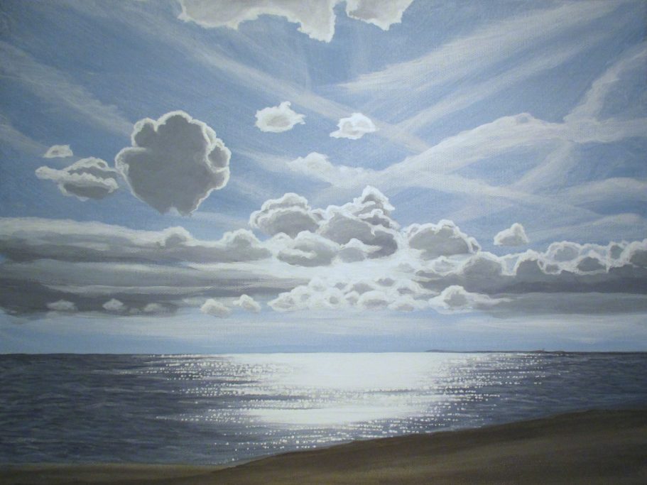 Das Zusammenspiel von Wolken, Sonnenlicht und Meer fasziniert mich immer und immer wieder und ich kann mich praktisch nie daran satt sehen. Und malen tue ich das auch immer wieder sehr gerne.