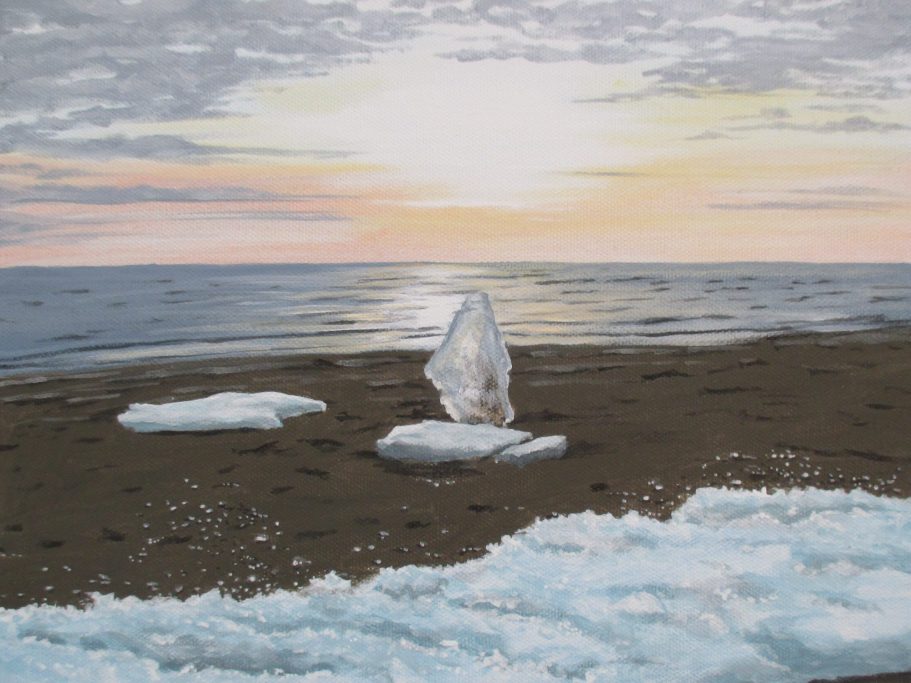 Der Strand mit Schnee und Eis im Winter hat seine besondere Stimmung und ist inzwischen sehr selten geworden. Ich hab es hiermit auf der Leinwand verewigt.